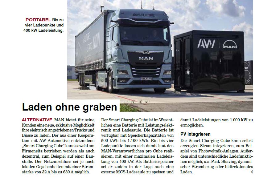 • Ladeleistung bis zu 1 MW ohne Netzüberlastung