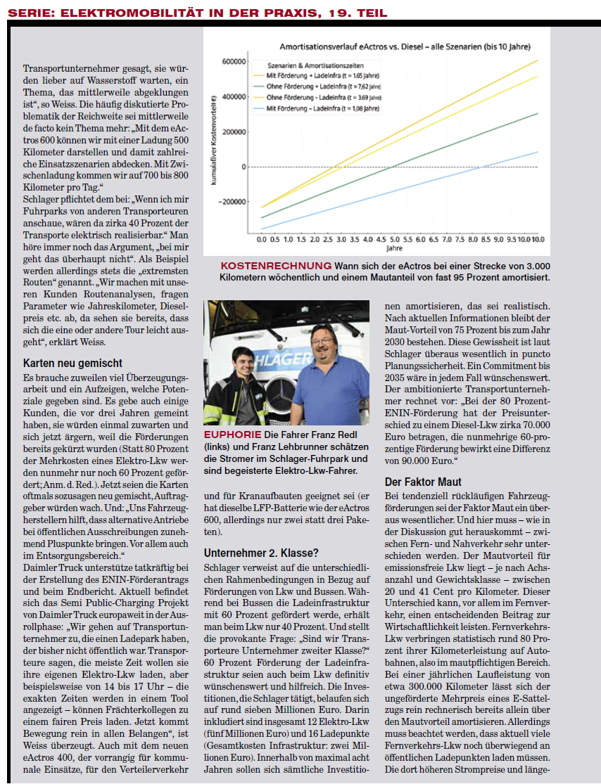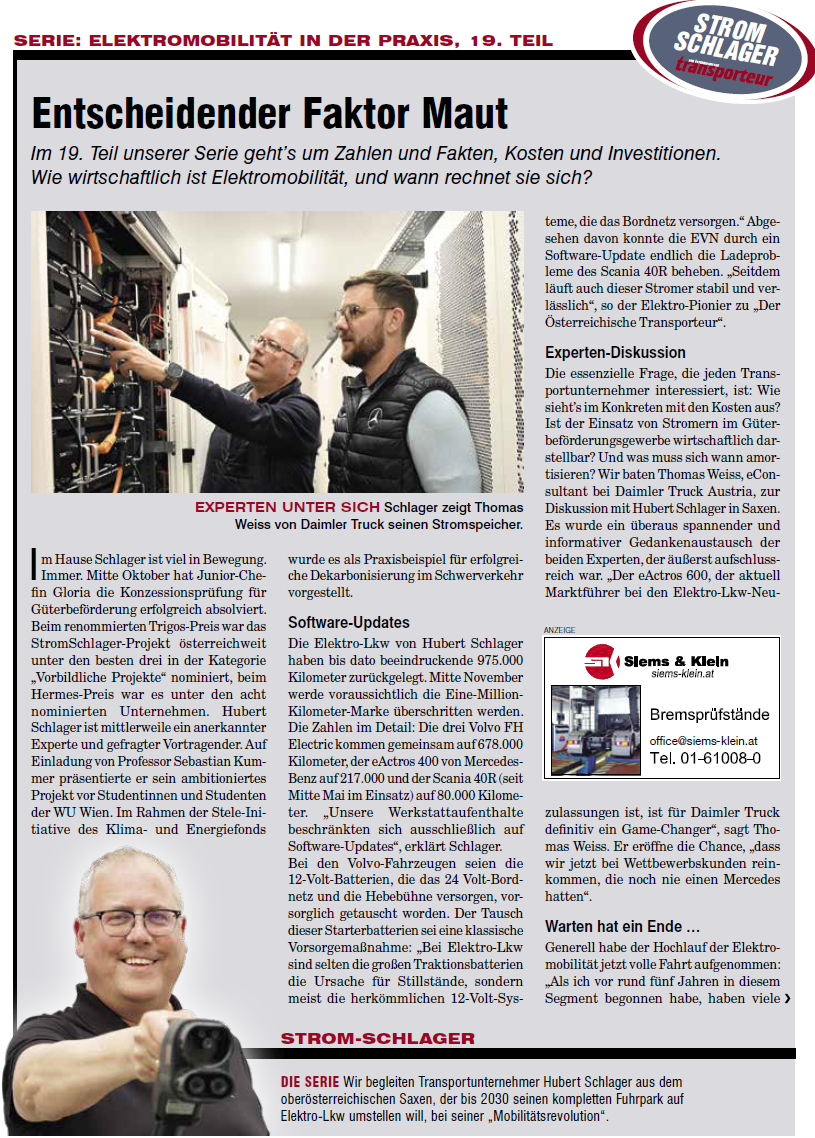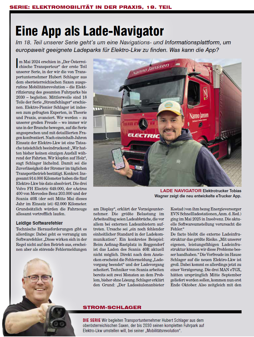(450 x gelesen)In der neuen Ausgabe von Der Österreichische Transporteur (Teil 18 der Serie „StromSchlager – Elektromobilität in der Praxis“) geht’s um ein echtes Pionierprojekt: die neue eTrucker App, entwickelt von Elektrotrucker Tobias Wagner.