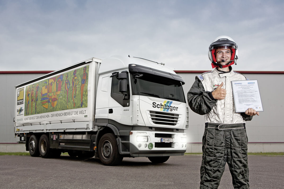 Sicherheit und Straße gehören untrennbar verbunden. Die neue Generation von LKWs ist mit einer Vielzahl von Sicherheitsausstattungen angereichert, die letztendlich um wirklich zu funktionieren, eines gemeinsam haben: Sie werden von Menschen bedient. Der richtige Umgang mit der Technik und der sich daraus ergebenden Fahrsicherheit, wird in der Praxis trainiert. Sicher ist nur, wer Sicherheit „erfährt“.