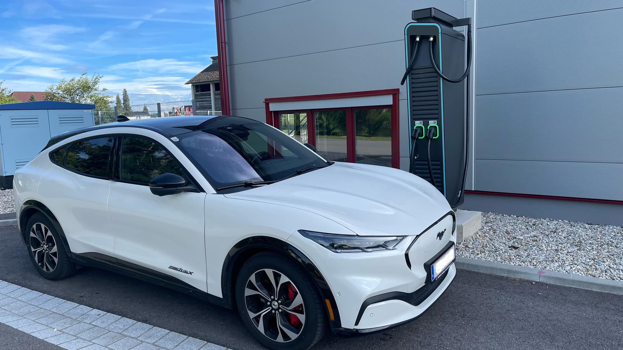 Hinter der neuen Logistikhalle wurden vier Elektroladeplätze geschaffen, die erste Schnelllade-Infrastruktur in der Region. Mittels Direct Paying ist es jedem möglich, sein Elektroauto oder seinen E-LKW schnell aufzuladen.
