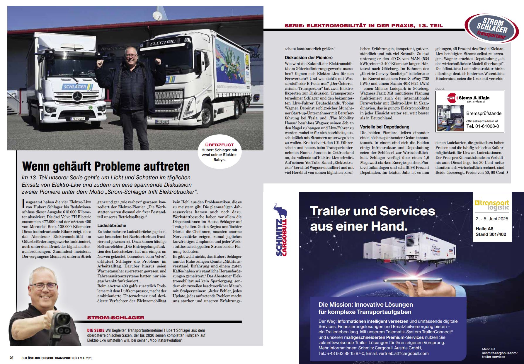 Der zweite der der E-Mobilitätsserie im "Der österreichische Transporteur" erstreckt sich bereits über fünf Seiten!