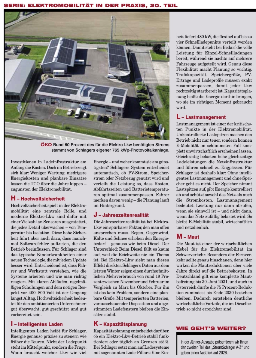 In der aktuellen Ausgabe von Der Österreichische Transporteur erscheint der 20. Teil unserer Serie StromSchlager.